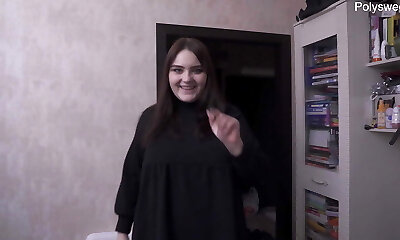 Junge Brown-haired 24 Jahre hat Gang Plumb und hoert nicht auf sich zu fingern