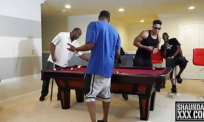 During an interracial group bang a white nymph takes on every black guy in town