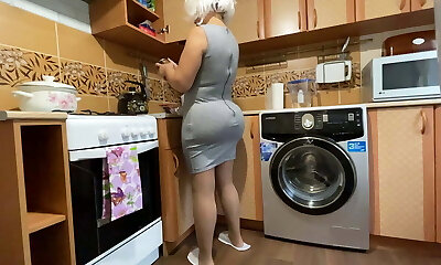 I saw a good-sized and mature booty in the kitchen missing anal