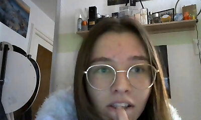 Nerdy Glasses Brunette Records for her Fans a G-string Try on Drag