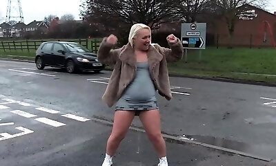 Chubby blonde pissing outdoors