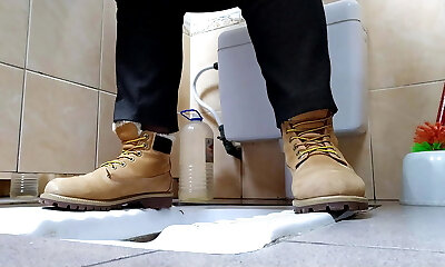 Urinate on his cock while he was on toilet