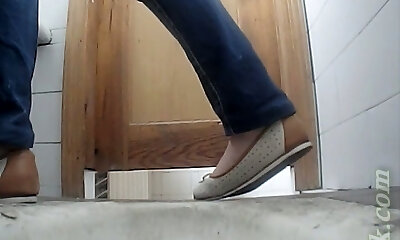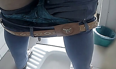 Chunky white amateur woman in the public toilet on spycam