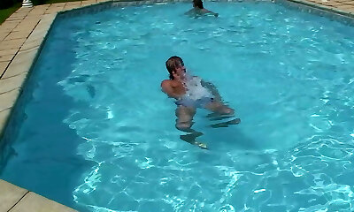 Paulina 18 pawing her great pussy hard at pool