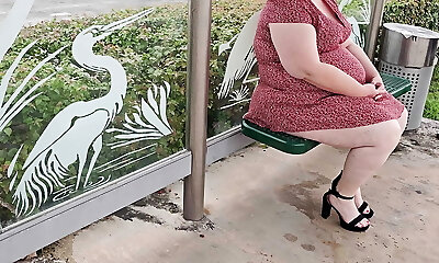 The pervy stranger at the bus stop asked me to hoist up my dress & demonstrate him my pussy