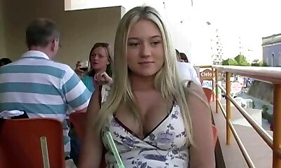 Big-chested blonde MILF gonna buy some water but ends up fucking in the van