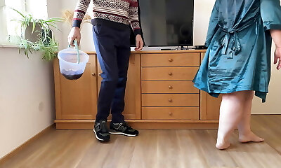 When my mother-in-law peed in a bucket like a cow, I stood and jacked off like a pimply teenie