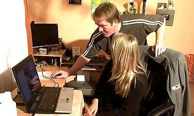 German swinger has quick three way on lunch break in adult cinema