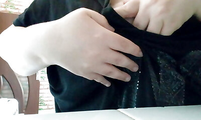 DRIPPING WET PUSSY SITS ON SEX Stool AND WATCHES PORN