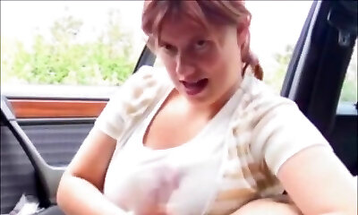 Taxi driver plays with good-sized milkings of an amateur hard-on-sucking MILF while driving her home