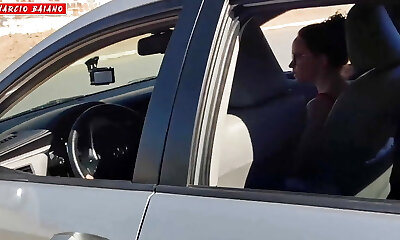 Aroused girlfriend stops her bf's car to blow him with intensity