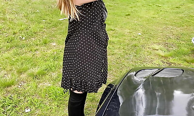 A Wife Without a Bra Passing By At the Litter Dump In the Morning