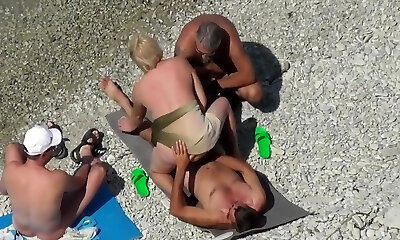 Raquel Sieb likes while being ravaged during gangbang on the sofa