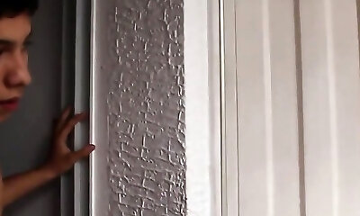 This stepmother is a real voyeur and enjoys watching her stepson jerk off his big dinky