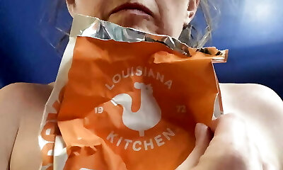 Convenience eating! Heartbroken Rachel Wriggler fights to hold back the tears as she eats Popeyes for breakfast at 6pm