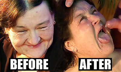 Very older granny didn't know cum on her face