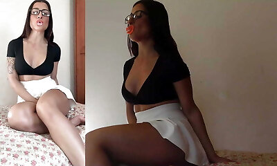Alia Janine and Angelina Valentine in a sexy self-blowing action