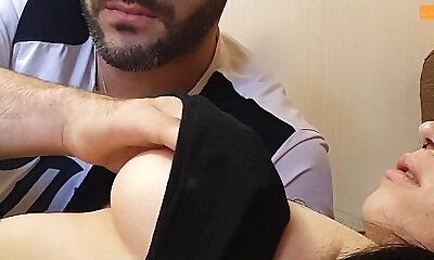 With with enormous udders and big nips brings another girl home for her man